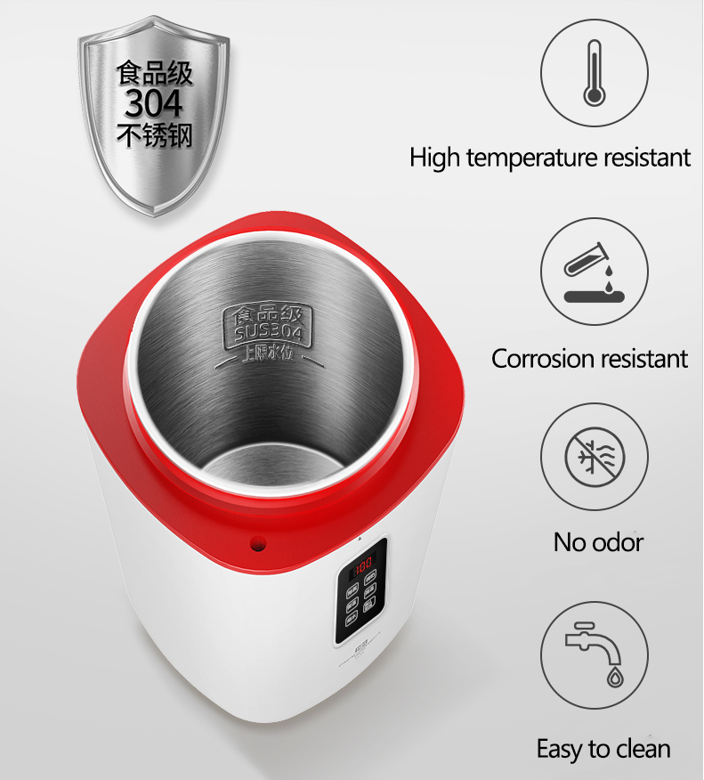 The double-layer pot body not only prevent hot but also heat preservation, even if the water temperature is 100°, the external temperature of the kettle will not exceed 50°, heat insulation and will not scald.