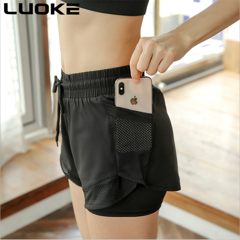 LUOKE Yoga Pants for Women Plus Size with Pockets Yoga Suit for Women Elastic Fitness Sport Short Pants Women Wear Running Shorts Pants Quick Dry High Elasticity Double Layer