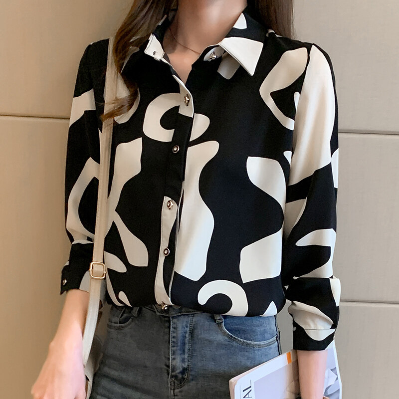 AFEG new women's long-sleeved printed chiffon elegant blouse for women