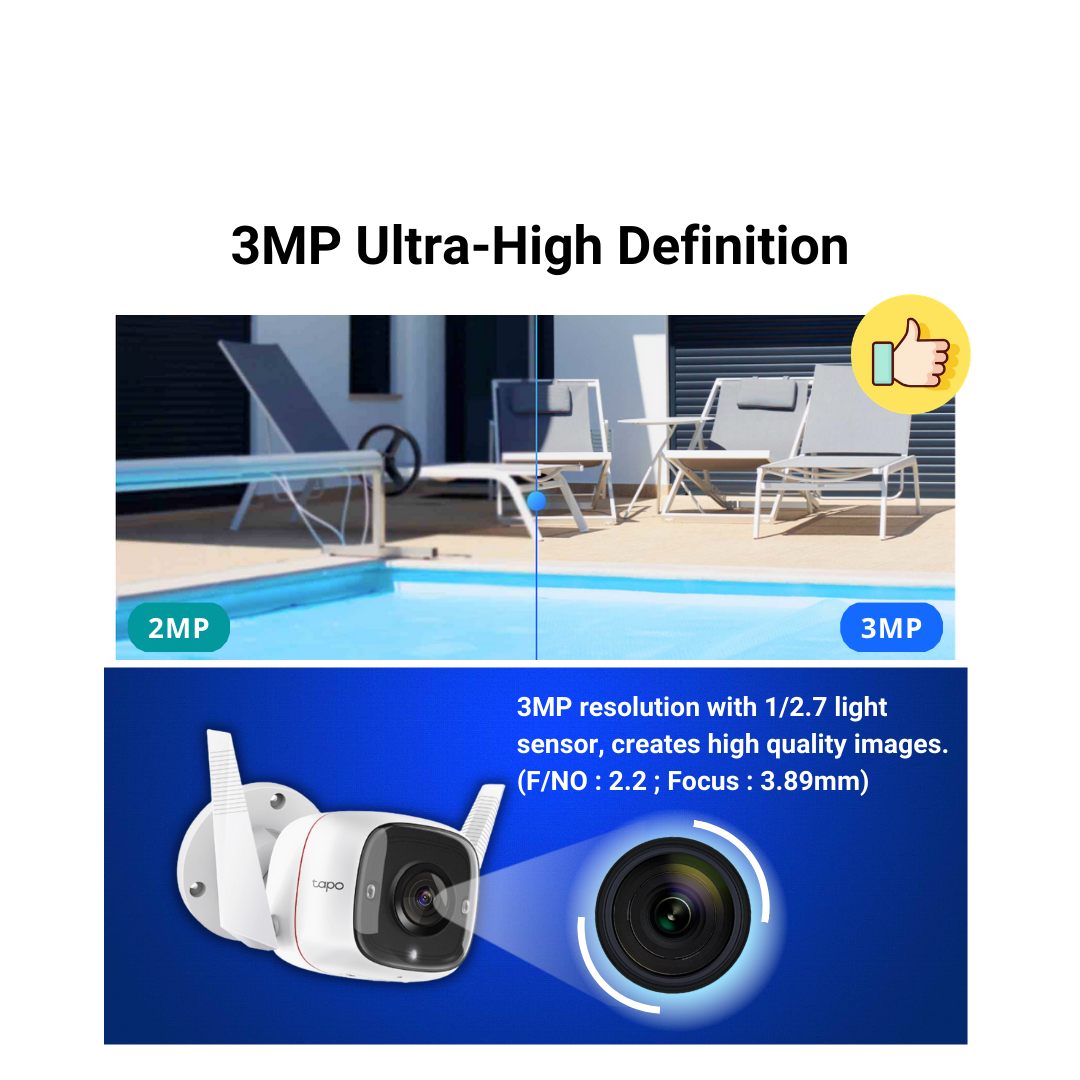[3 YRS SG Warranty] TP-Link Tapo C310 3MP Full HD 1296p Outdoor Security WiFi Camera (Weather Proof/2-Way Audio/Night View/Motion Detection/Up to 128gb Micro SD Storage)