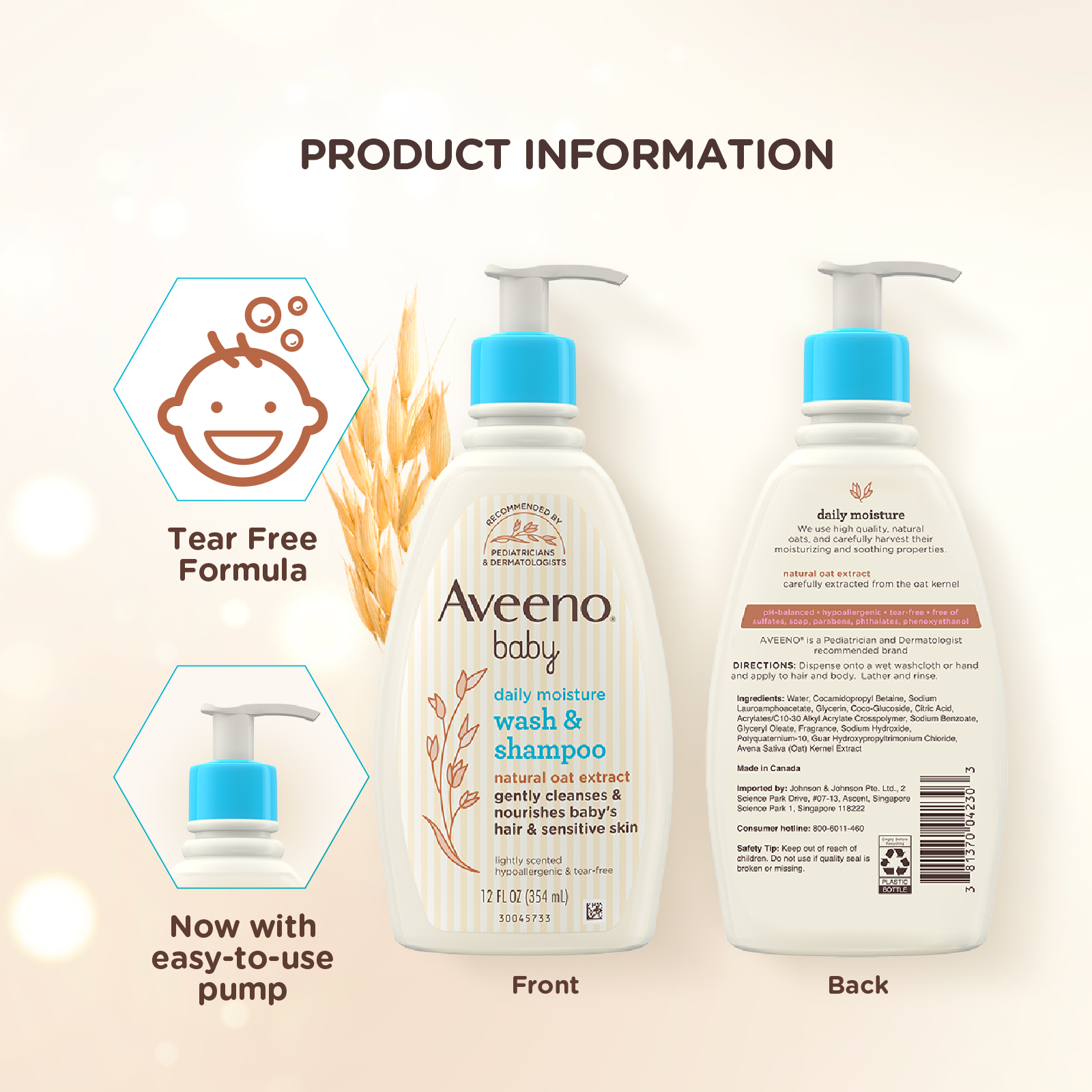 All the clean your baby needs in one gentle formula. Made for babies with sensitive skin, this baby wash and shampoo cleanses without drying. AVEENO® Baby Wash & Shampoo contains natural oat extract, known for its soothing and nourishing properties. And the rich lather rinses clean, leaving a light, fresh fragrance.