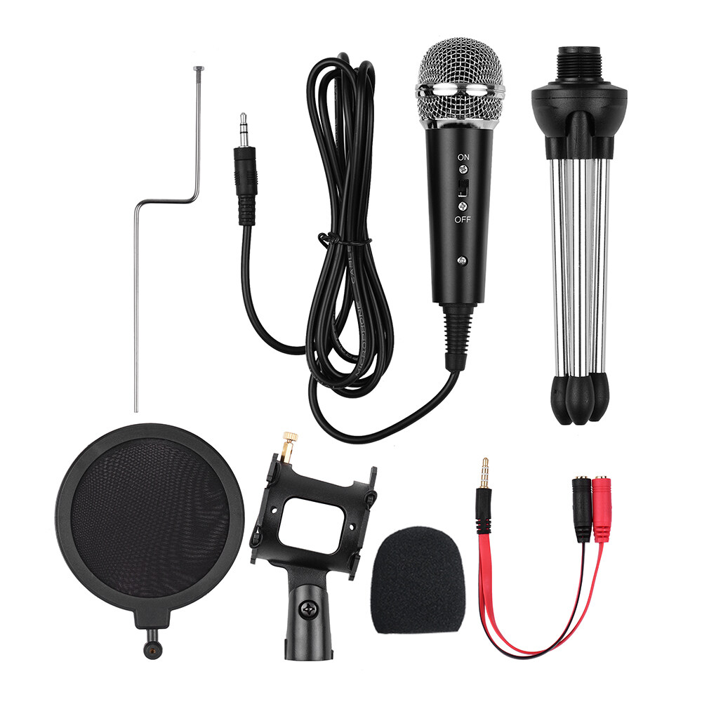 Video Microphone Kit with Mini Microphone Tripod Shock Mount Pop Filter Windshield Adapter Cable 3.5mm Plug