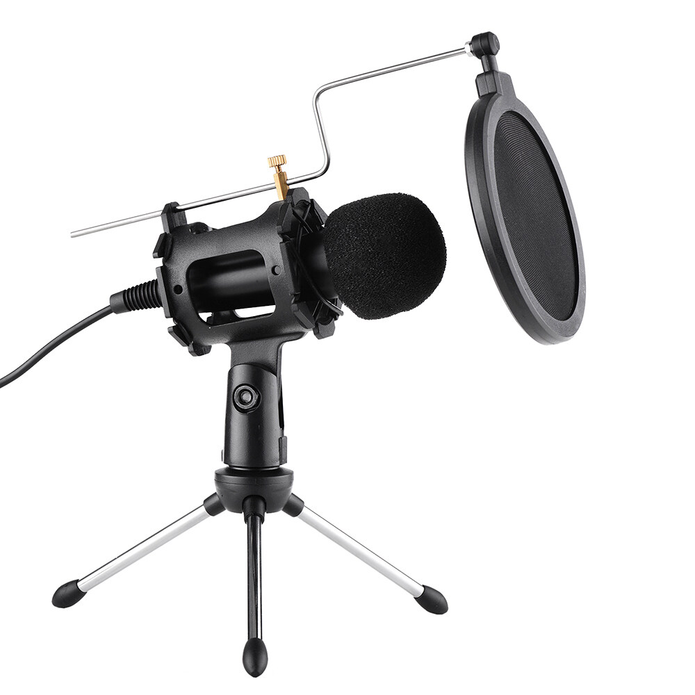 Microphone with Table Tripod: This is a table microphone kit which includes mini microphone, tripod, shock mount, pop filter, windshield and adapter cable.