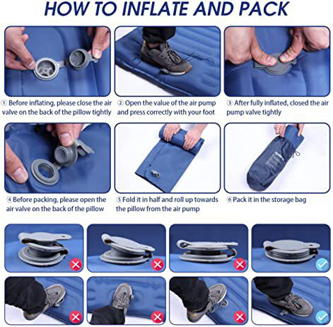 Afdeal Inflatable Sleeping Pad Outdoor Camping Inflatable Mattress Bed with Pillows Ultra-Light Nylon TPU Damp Proof Folding Travel Air Mat Cushion with Pump