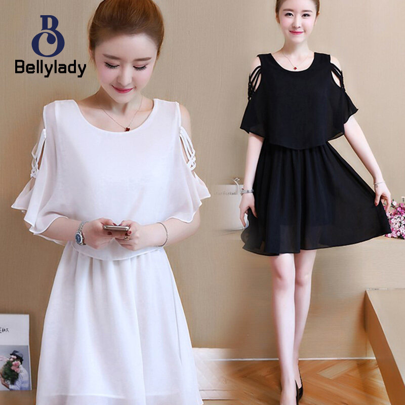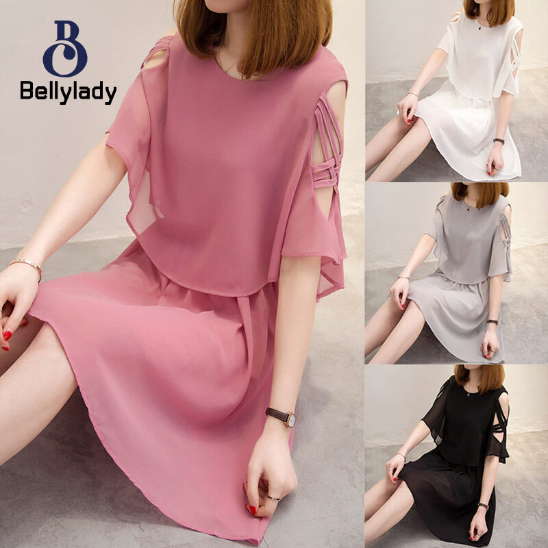 Women Spring Summer Short Sleeve High Waist A-line Chiffon Dress