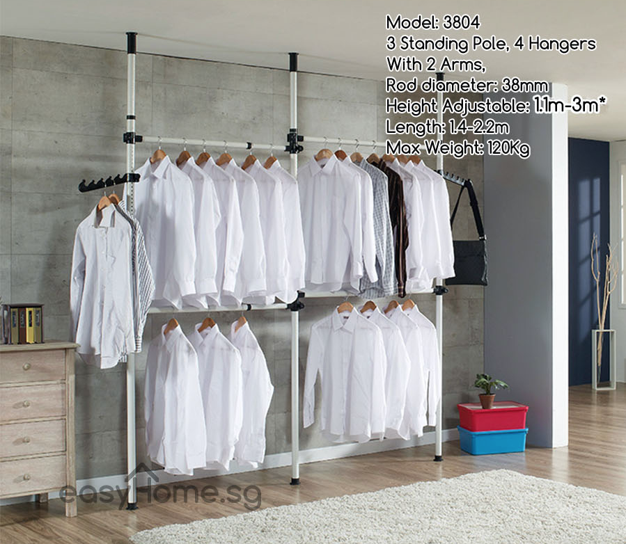 3804 Korean Standing Pole Clothes Rack- Adjustable Hanger Bar/ Drying Shelf