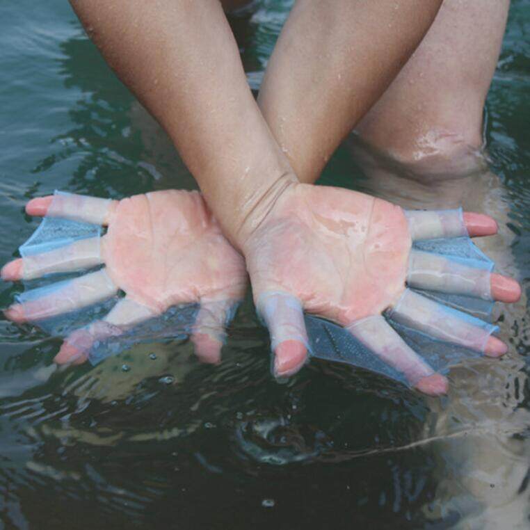 Silicone Palm Hand Swimming Fins Hand Webbed Gloves Swimming Flippers Triathlon Training Fins Fast Finger Gloves Web Paddle