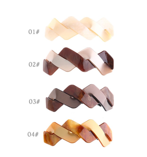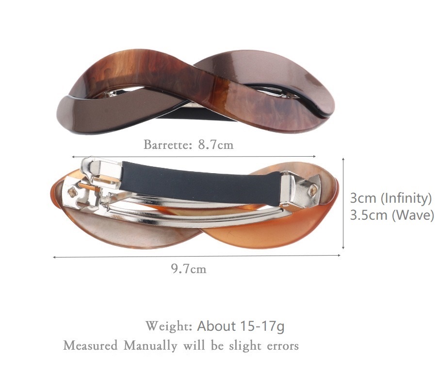 - Color: 4 colors in 2 shapes (Infinity & Wave). Please note: Due to the unique patterns in the materials used, each clip from our Handmade collection can vary from the one displayed in the product photo. Hence once you ordered, you are considered as accpet the slight color differences.
