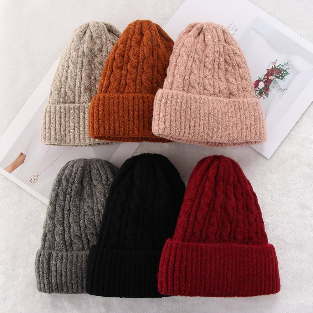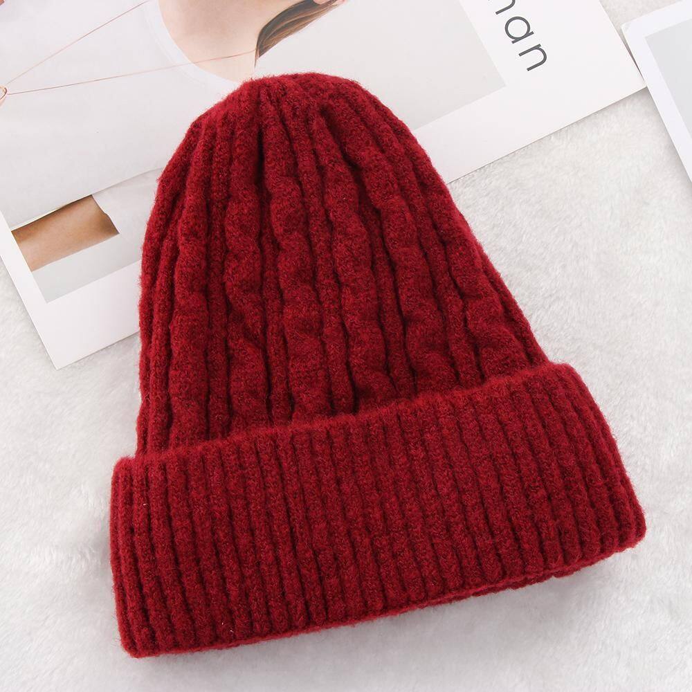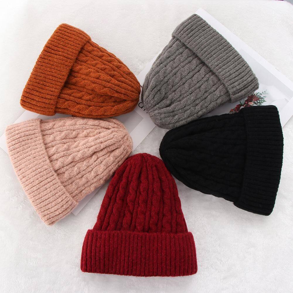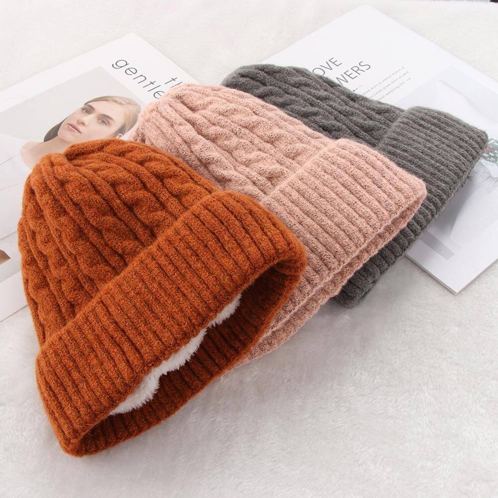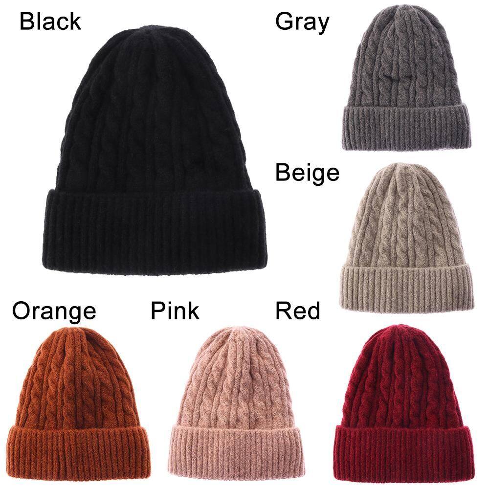 BTTJ0 Fashion Solid Color Women Men Winter Warm Thick Fleece Hedging Cap Wool Knitted Beanies Casual Ski Hats Slouchy Bonnet