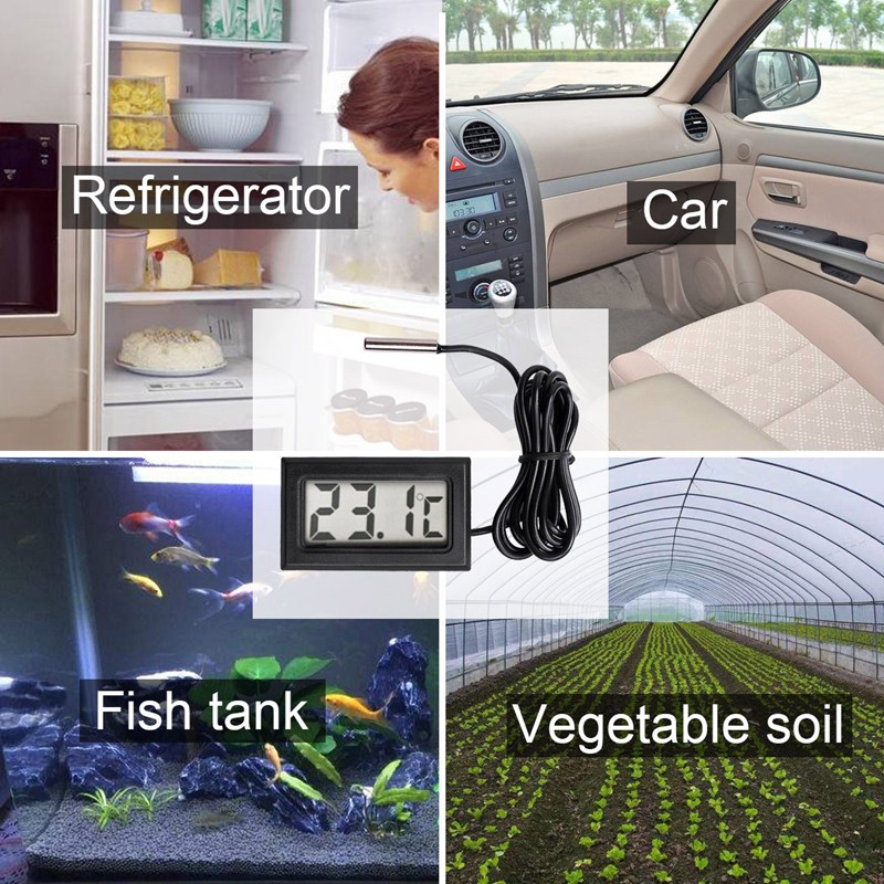 Description: Product Name:Digital Product material: Plastic Product color: black Machine size: 4.8cm × 2.8cm × 1.5cm Embedded hole size: 4.6cm × 2.7cm × 1.4cm Product weight: 30g Package Contents: 1x Digital 1x Embedded hole Features: : -50 °C ~ +110 °C : ± 0.5 °C Resolution: 0.1 °C Sensor: Thermistor sensors, cable length 1 m, stainless steel probe : Temperature: 0 °C ~ +60 °C; Humidity: 5% to 80% , the sensing line contact with the measured object, the display shows the current temperature