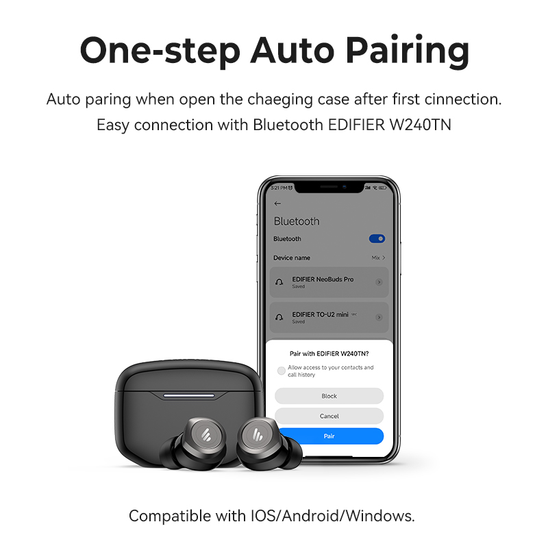 Edifier W240TN True Wireless Earbuds Noise Cancellation Earbuds with Bluetooth V5.3 up to 25hrs Playtime Support Voice Assitant Custom Button Contorl EQ Mode Shutdown Timer