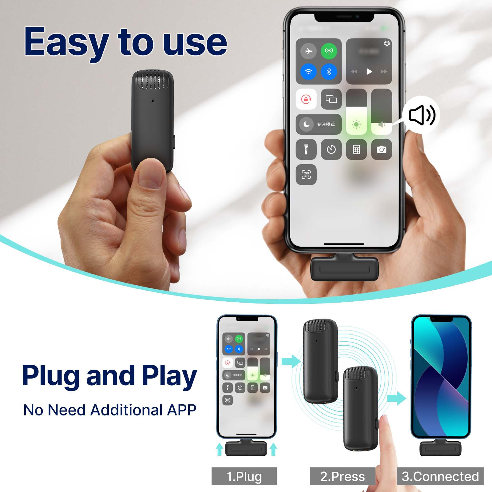 【Wireless Microphone System】Including 1 receivers & 2 microphone transmitters, supports dual microphone simultaneous recording, plug-and-play, no APP needed, very suitable for phone vlog, live streaming, interview, online chatting, etc.