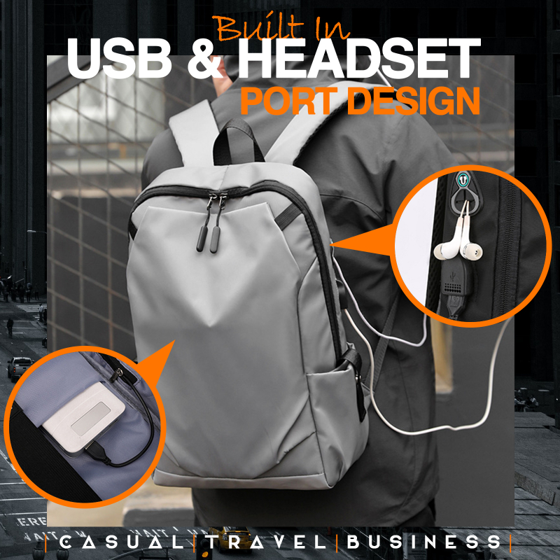 ✅ [SG] Men Laptop backpack/ Waterproof backpack School Bag/ Business Travel Leisure Bag with USB charging Port