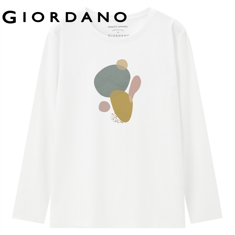 GIORDANO Women Huaxiansheng Series T-Shirts Crewneck 100% Cotton Fashion Tee Simple Print Long Sleeve Casual T-Shirts 99392188