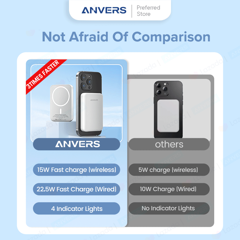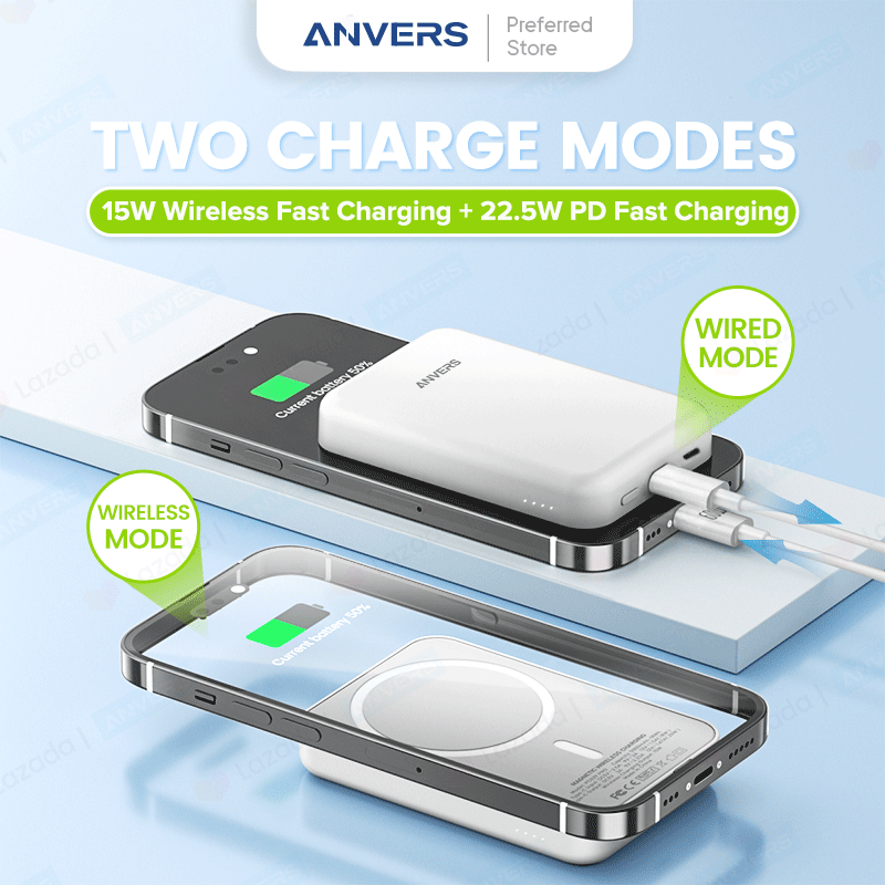Anvers Magsafe Power Bank 10000mAh Wireless Magnetic Battery Pack Fast Charging Portable Charger for iPhone 16/15/14/13/12