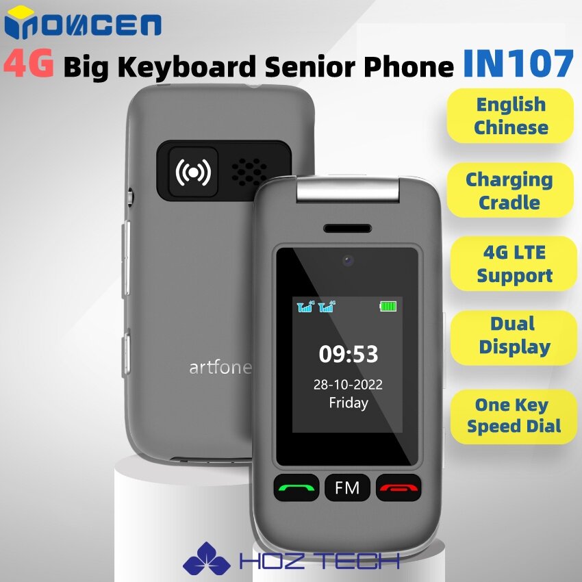 INOVAGEN 4G LTE Senior Flip Phone IN107,Speed Dial,Charging Dock,SOS Key,English and Chinese,2.4inch Color Dual LCD Display,Big Button,Big Font,Unlocked Senior Citizen Backup Phone