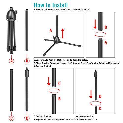 AGPtek Microphone Stand, Improved Desk Arm Type, Extendable Arm, For Condenser Microphone, Easy Storage, Conversion Adapter, Suitable for Karaoke, Live Broadcasting, Streaming, Recording, Singing