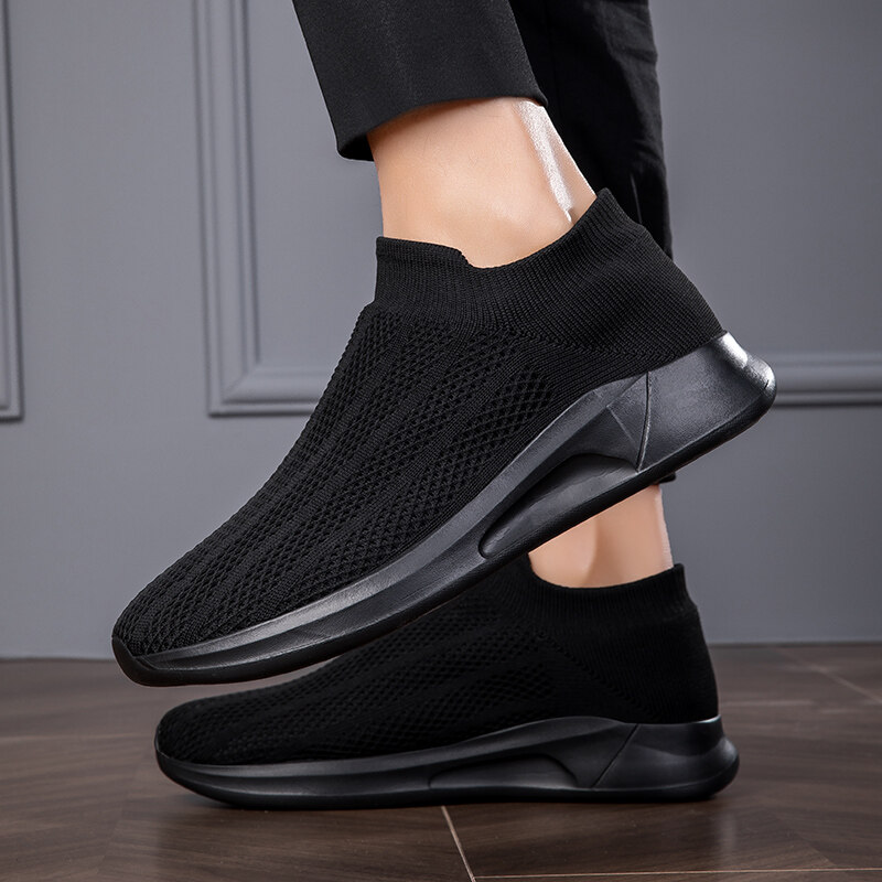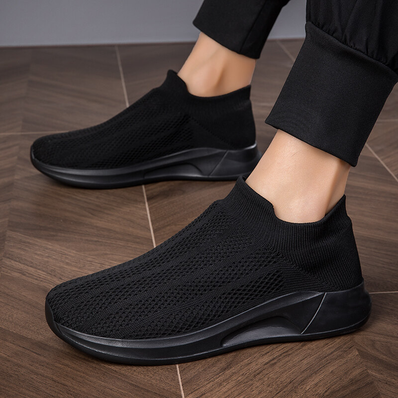 Mesh Surface Shoes Men's Summer Breathable Thin Mesh Surface Hollowed Large Mesh Men's Shoes Casual Running Black Flyknit Sneaker