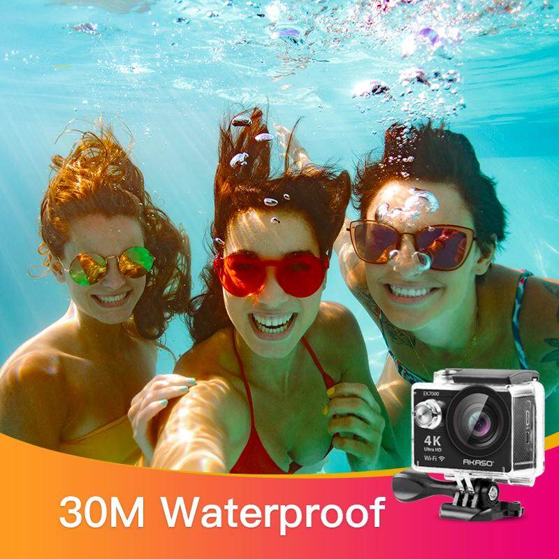 Professional Video QualityAKASO EK7000 features ultra HD 4K video recording. You can capture stunning 4K 25fps/2.7K 30fps/1080P 60fps videowhich is sharper and more lifelike than ever. High-resolution, high frame rate 4K 25fps and 2.7K 30fps video deliversdistinctly smooth video.Fast, Powerful Photo CaptureWith 12MP Burst photos at a blistering 30 frames per second, AKASO EK7000 Camera helps you capture the momentsyou don't want to miss. Capture single photos, Burst photo or choose Time Lapse mode to shoot photos automaticallyat set time intervals from 0.5 to 60 seconds.Control, View and Instantly Share with Built-in WiFiBe able to captures the 170 degree wide angle perspective, AKASO EK7000 features built-in Wi-Fi, allowing you to connectto the smart phone, tablet, computer and more to sharing via text, email, Facebook, Twitter, and more to your friends,family or followers . The built-in Wi-Fi can control cameras from distances of up to 50-feet (15-meters).Shift Your Action As You LikeUse the remote control of the camera to choose the mode you prefer as you recording. You can shift from video to photo, burst phototo time lapse with just press the button of the remote for super convenience.