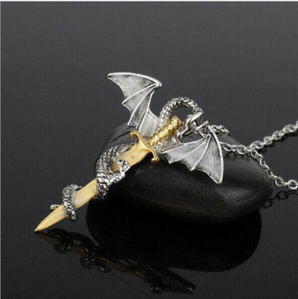 MeiYang Mens Silver Gold Stainless Steel Pendant Necklace Chain Punk Dragon Wing