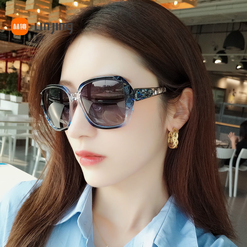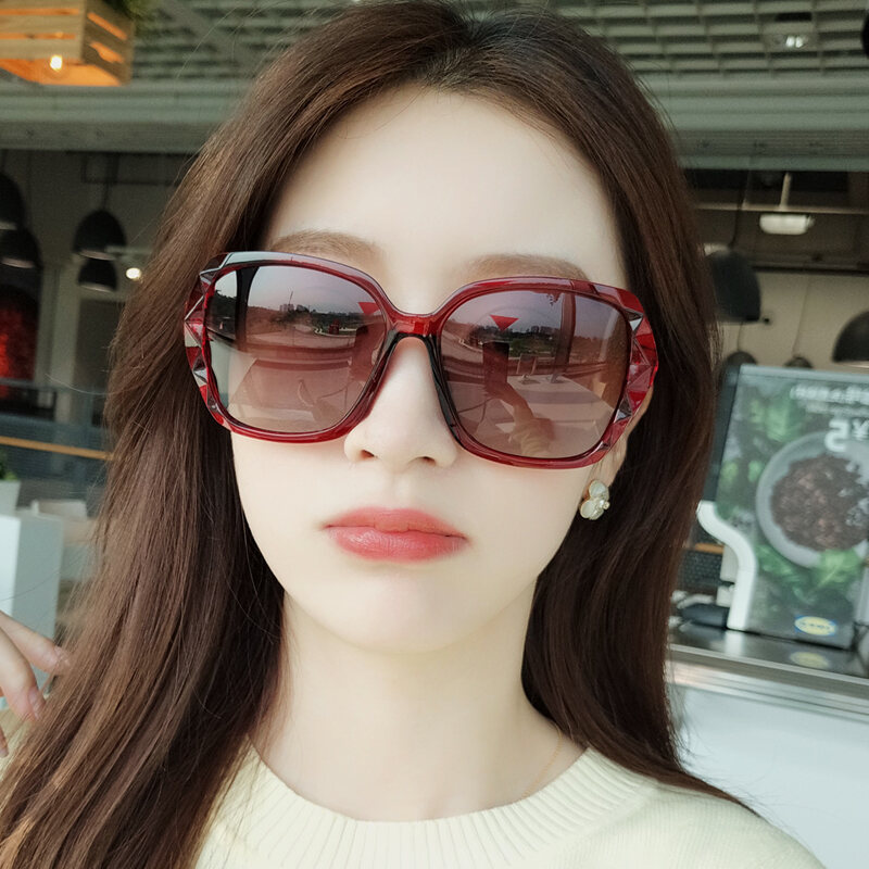 2022 New Large Frame Slimming Sunglasses Women's UV-Proof Driving Polarized Sunglasses Women's Summer Diamond Glasses Fashion