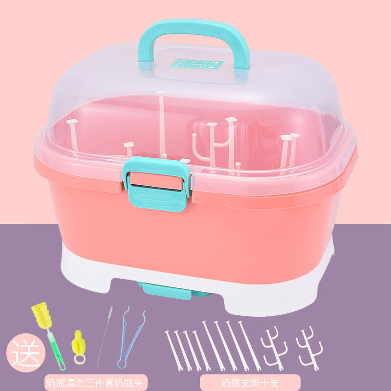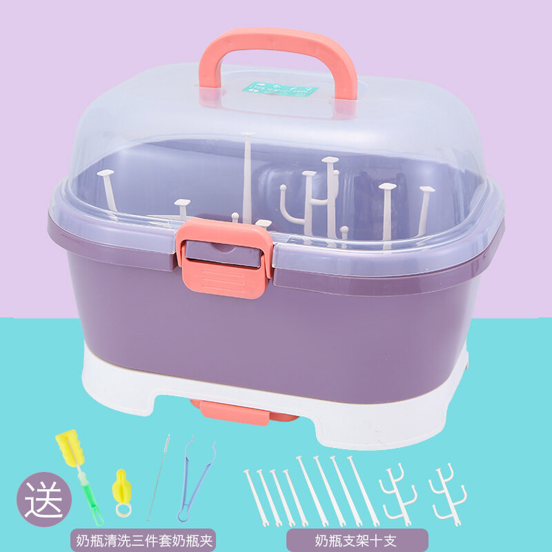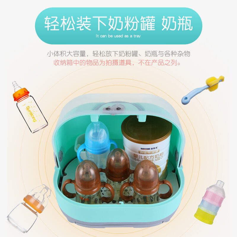 Baby Bottle Storage Box Portable Dustproof Draining Rack with Lid Baby Tableware Milk Powder Storage Box Shelf