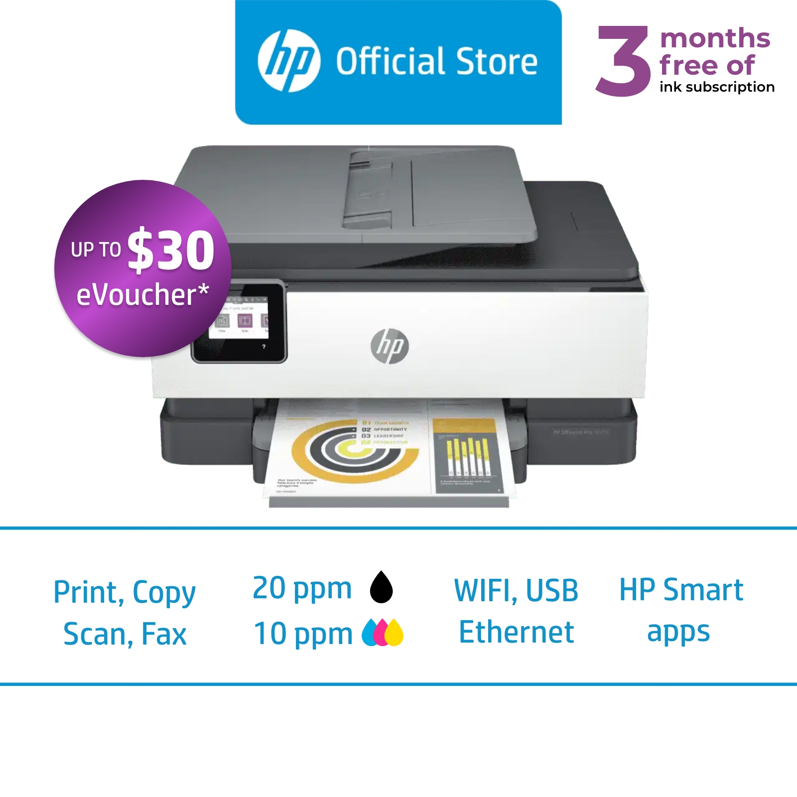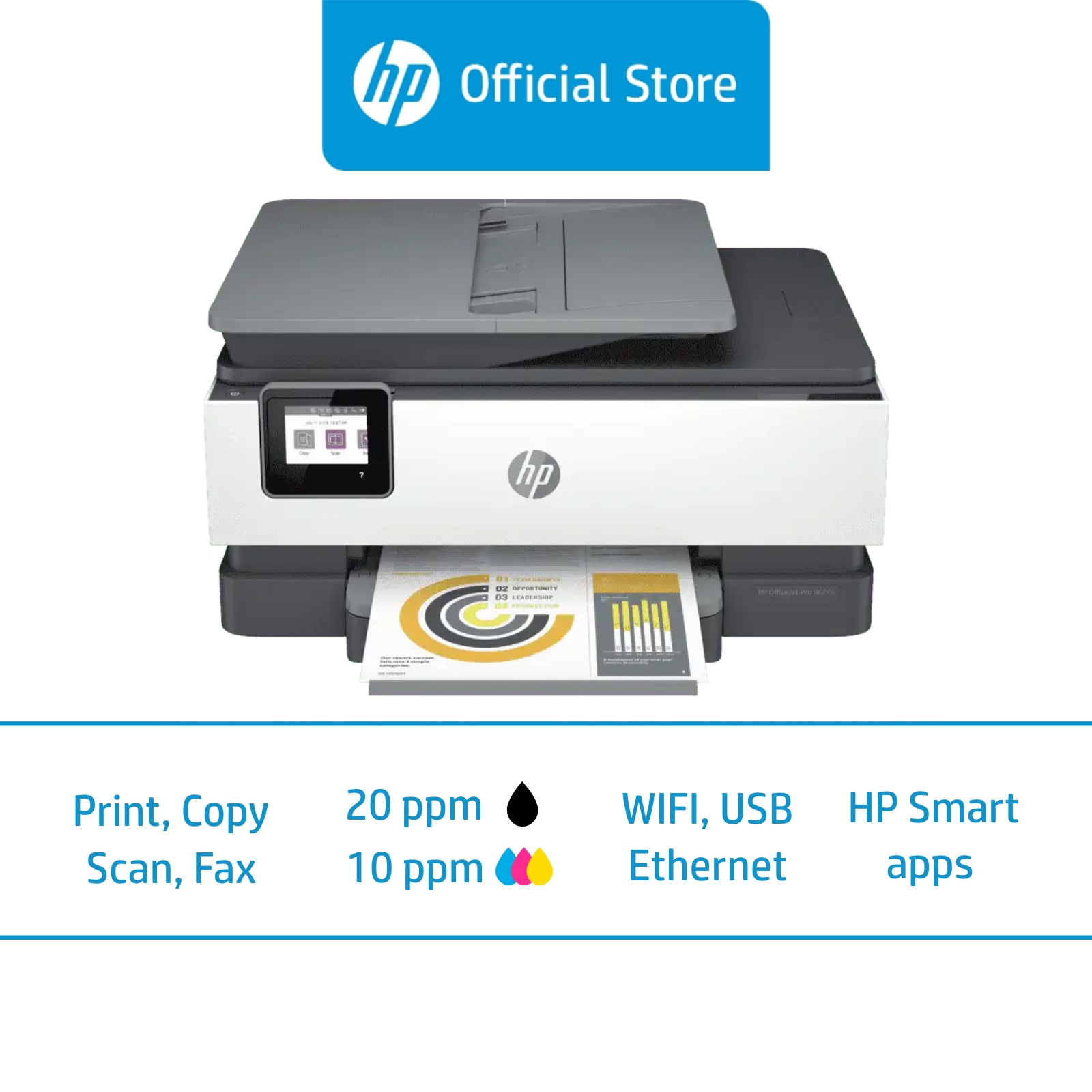 HP OfficeJet Pro 8020e All-in-One Wireless Color Inkjet Printer / Print, Scan and Copy / ADF / Duplex / One Year Warranty
