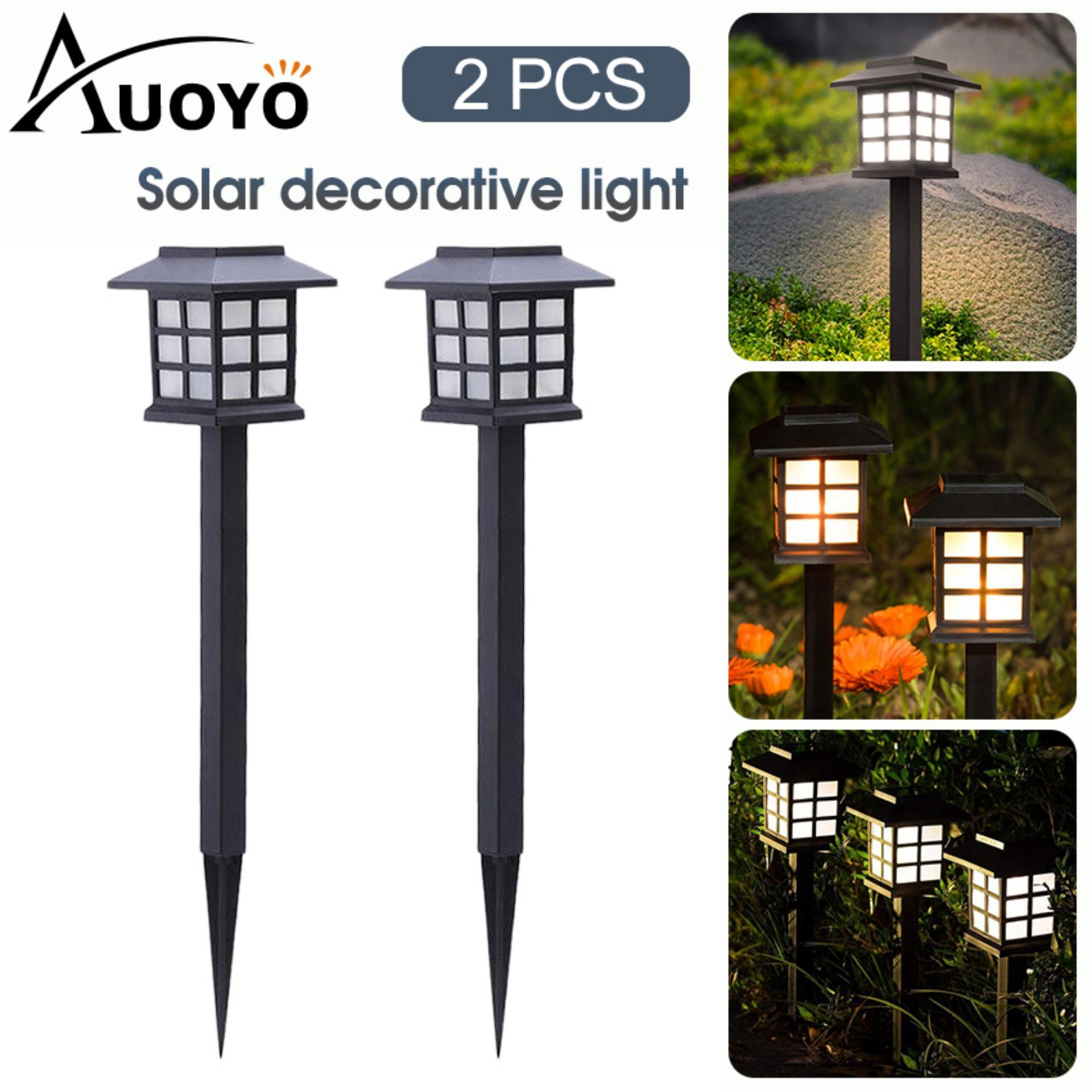 Auoyo 2PCS Solar Garden Lights Outdoor Lighting Waterproof LED Solar Stake Light Lantern Style Outdoor Decorative Light Auto On/Off for Garden Yard Pathways