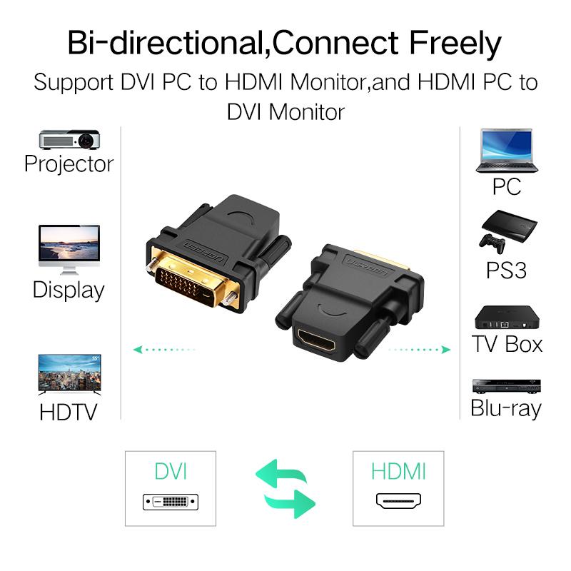UGREEN HDMI to DVI 24+1 Adapter Female to Male 1080P HDTV Converter DVI Connector for PC PS3 Projector TV Box-Intl