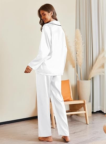 Ekouaer Pajamas For Women Set Silk Pjs 2 Piece Satin Sleepwear Long Sleeve Button Down Lounge Sets With Pant
