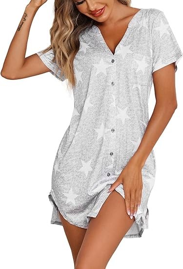 • 【Button Nightshirt】The sexy sleep dress featuring deep v neck/front button closure/short sleeve,high quality Super soft,breathable sleepshirt takes you comfy and relaxation